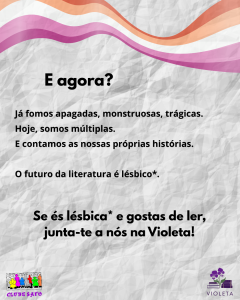 A escassez de histórias sáficas na literatura, especialmente quando comparada com a literatura focada em relacionamentos entre homens, é um fenómeno enraizado em séculos de misoginia e estruturas patriarcais, na desvalorização da sexualidade e identidade feminina, na invisibilidade das lésbicas* na esfera pública. Se as histórias que inventamos e reproduzimos são o produto do que somos enquanto sociedade, é óbvio que nos vai faltar representatividade multidimensional, para lá da miséria emocional e hipersexualização. Porém, muitos passos têm sido dados. E continua a haver esperança, somos homo narrens (humanos narradores), com o superpoder da construção da realidade, somos uma espécie de arquitetes do cosmos. Podemos criar mundos. Podemos também escolher em que mundos (livros, filmes) queremos passar o nosso tempo e partilhar com outras pessoas.