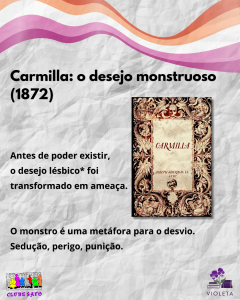 É comum uma identidade sexual considerada “desviante” ser alvo de monstruosização, o corpo de um monstro incorpora medos e fantasias de uma cultura específica: o vampirismo em Carmilla é uma metáfora para o lesbianismo, frequentemente associado a conceitos de patologia ou doença dentro do contexto social e médico do século XIX.