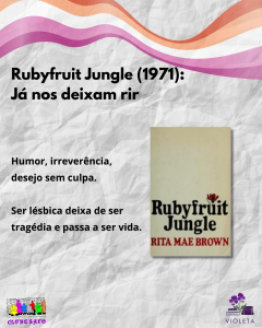Rubyfruit Jungle é uma lufada de ar fresco: finalmente podemos rir, de nós, do mundo. O humor aparece como uma estratégia de sobrevivência e de subversão do sistema, por contraste à miséria emocional que nos tornava mais aceitáveis. As identidades lésbicas* deixam de ser ocultadas, higienizadas ou martirizadas. Começam, aos poucos, a existir, em toda a sua plenitude. E podem, inclusivamente, ser construídas e reconstruídas, repensadas, questionadas e desafiadas, a partir de dentro.
